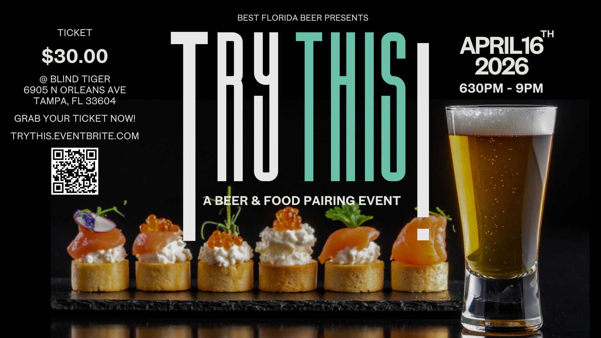 Join us for Try This! A Beer and Food Pairing Night on April 16th from 6:30 to 9:00 PM at Blind Tiger in Seminole Heights.